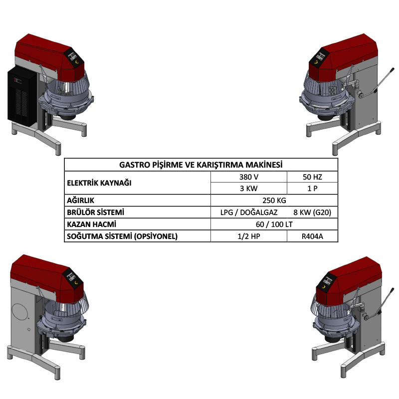 Döner kazan sistemi sayesinde ürün pişme ve karıştırma esnasında uygun düzeyde karıştırma sağlanarak daha homojen bir karışım elde edilebilir ve raf ömrü daha uzun ürün üretilebilir. Soğutucu sistemi aktifleştirerek ürünü pişirme işlemi tamamlandıktan sonra kazandan ürünü çıkartmadan kullanıma hazır hale çok daha hızlı getirebilirsiniz. Güçlü motor ile donatılan makinemiz iki adet palet sayesinde her türlü pastane ürünün üretiminde kullanılabilir olup sert hamurların da üstesinden gelecektir. Pratik bir şekilde yerinden çıkarılabilen paletler ve kazan ile makinenin temizliğini kolay ve hızlı bir şekilde yapabilirsiniz.